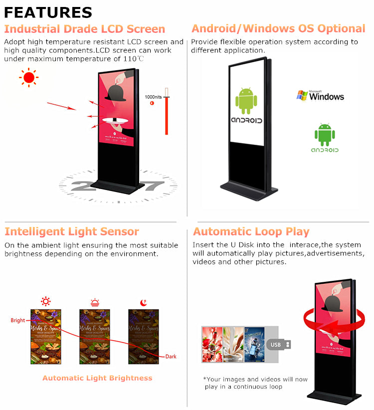 - High-Quality Display: Offers vibrant and clear visuals with high resolution and brightness, ensuring your content stands out.