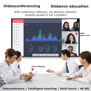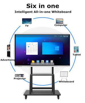 Intelligent interactive teaching all-in-one machine, integrated with the projector, screen, electronic whiteboard, TV, computer, tablet, set-top box, learning machine, audio nine equipment functions in one;